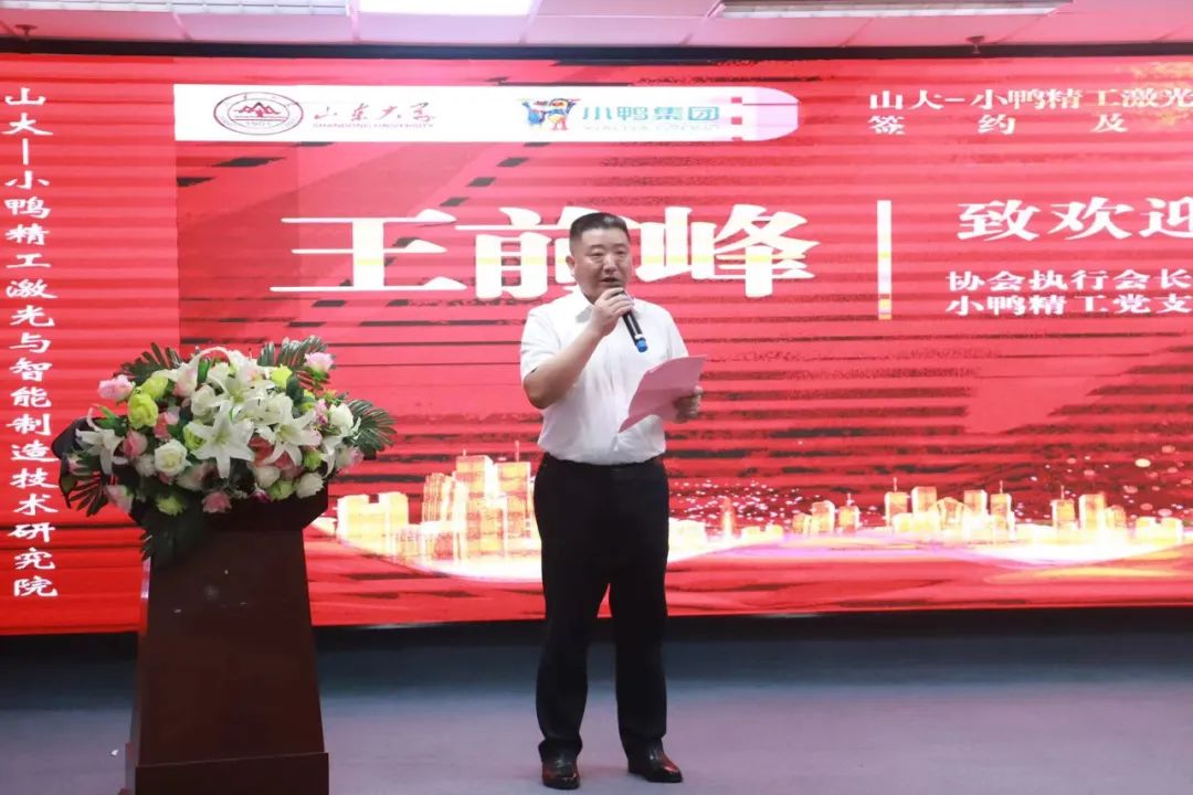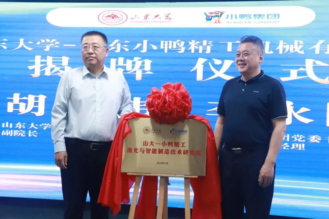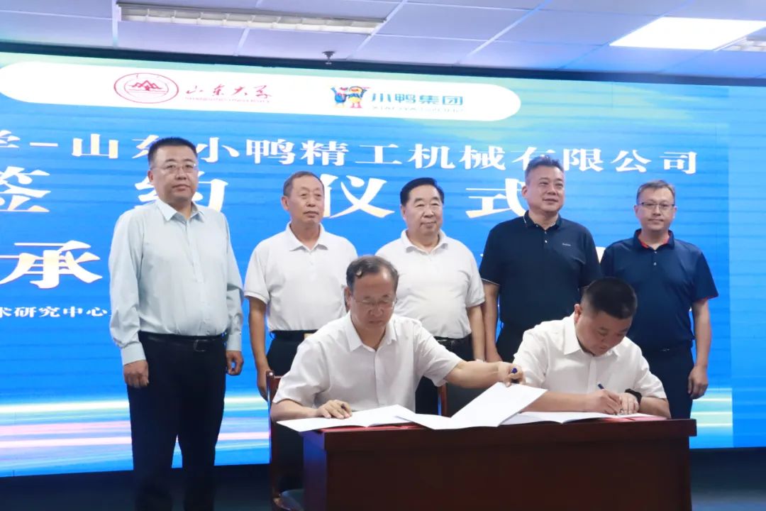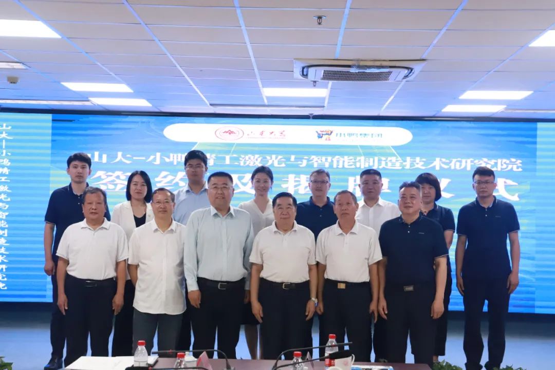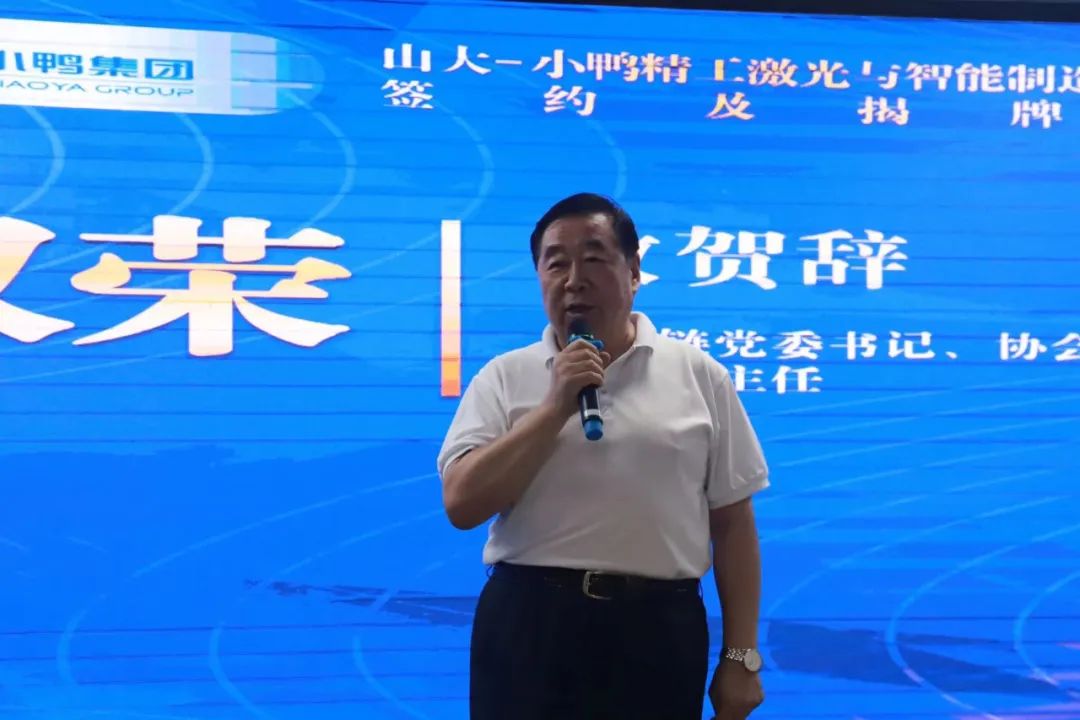 小鴨精工黨支部書記、總經(jīng)理王前峰和山東大學(xué)張承瑞教授共同簽署山大-小鴨精工激光與智能制造技術(shù)研究院共建協(xié)議。